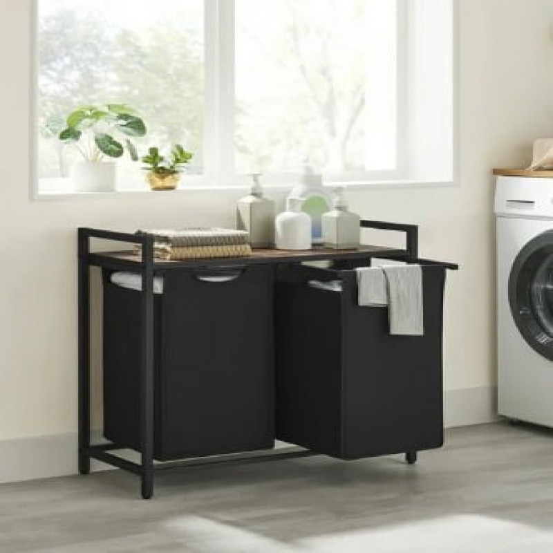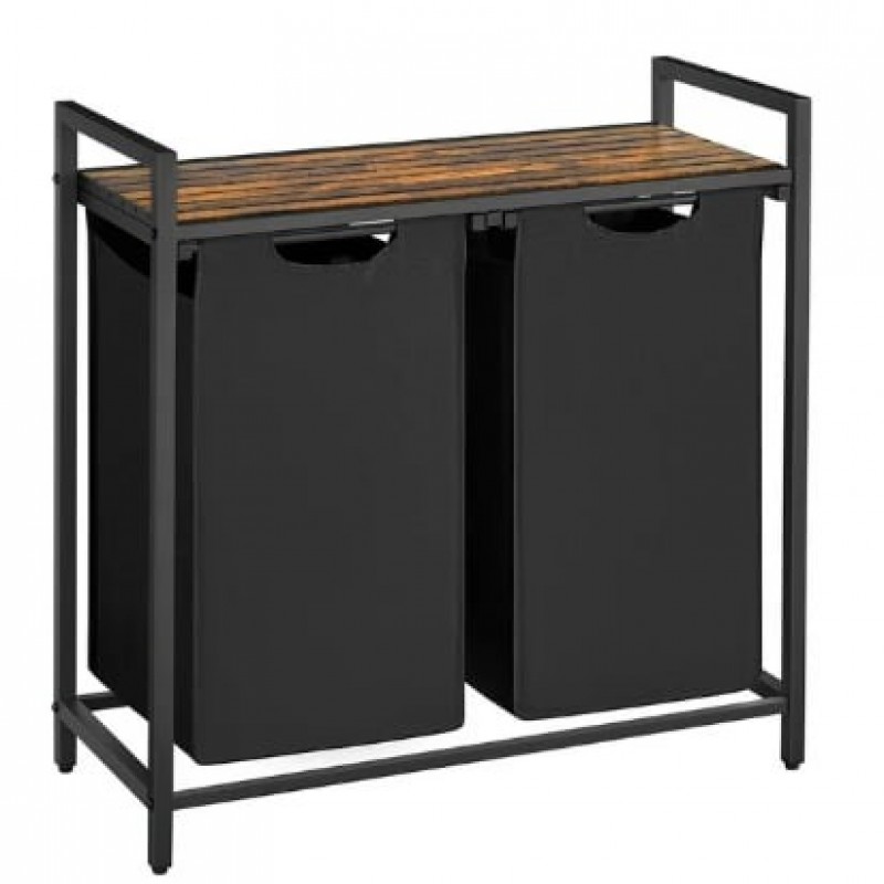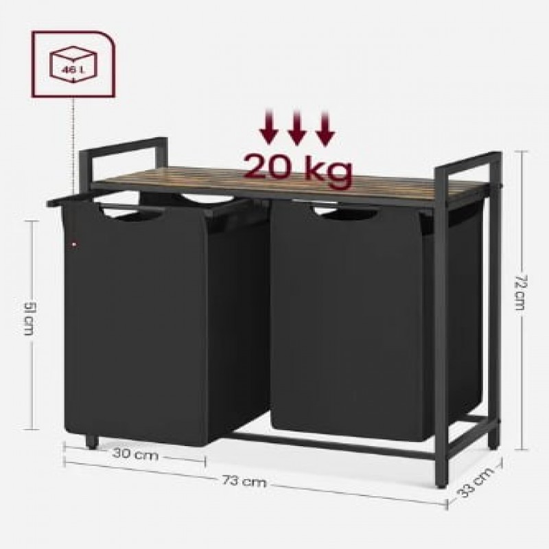 【2 ОТДЕЛЕНИЯ】Общий объем этой корзины для белья составляет 92 л (46 л на каждый мешок); 2 отделения позволяют организовать вещи по типу или разделить светлые и темные вещи.