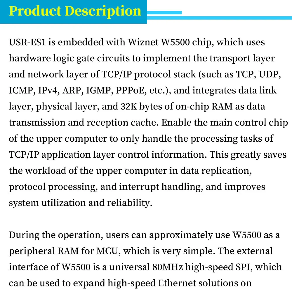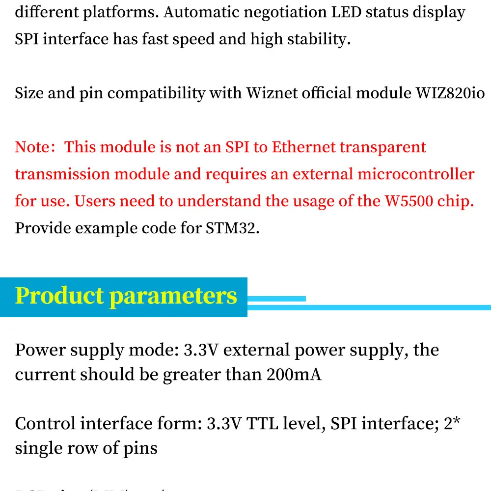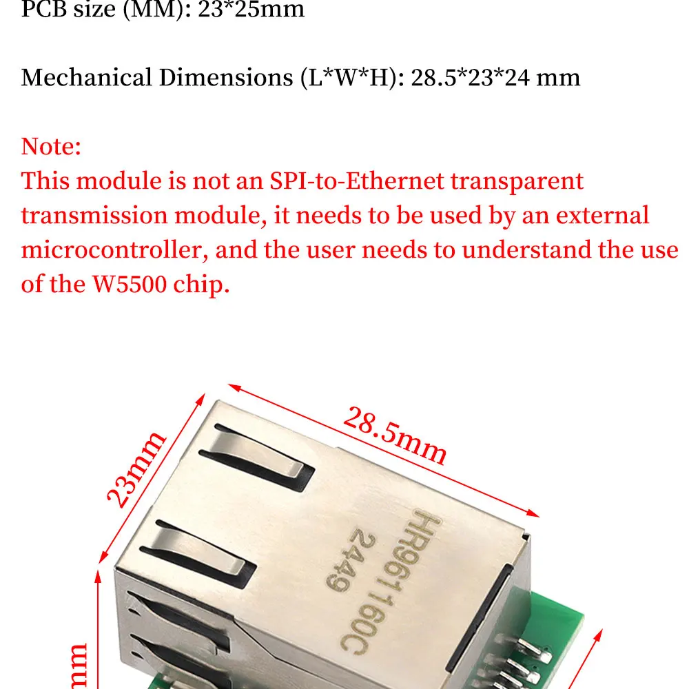 Этот модуль не является прозрачным модулем передачи SPI-to-Ethernet, его должен использовать внешний микроконтроллер, и пользователю необходимо понять использование чипа W5500.