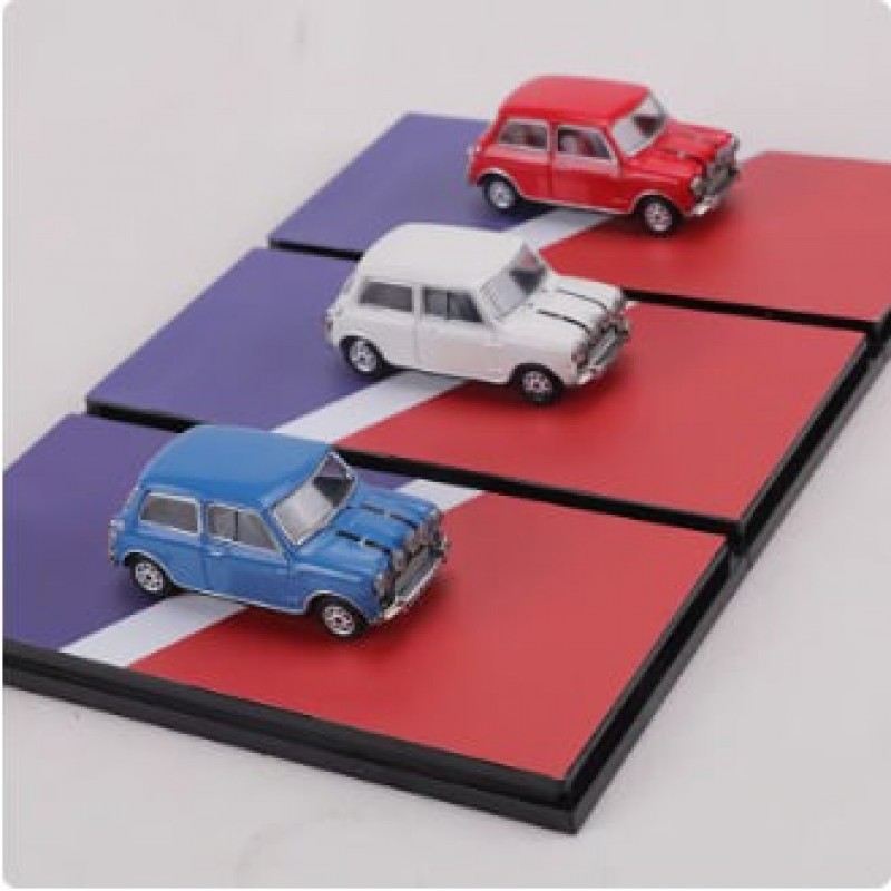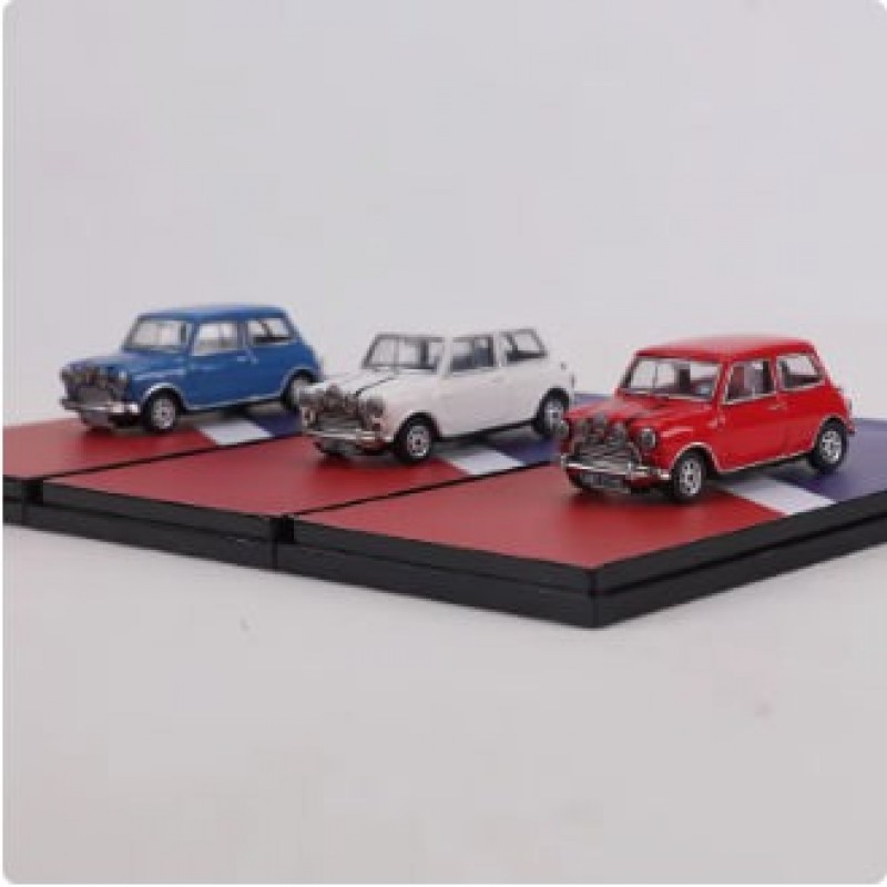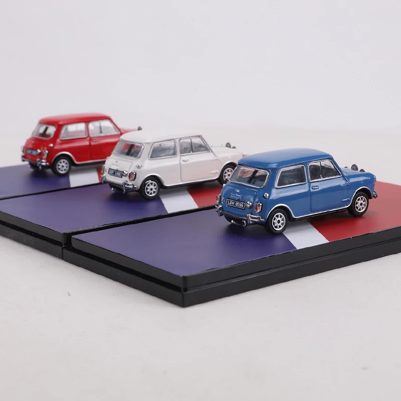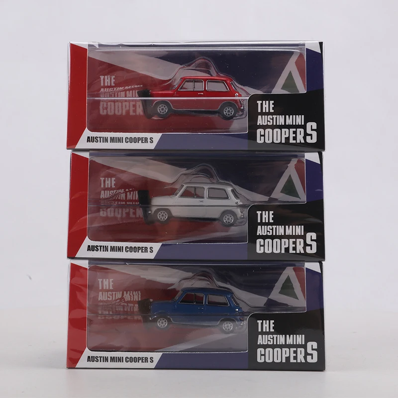 Модель автомобиля GCD 1:64 Austin Mini Cooper S белого/синего/красного цвета из сплава