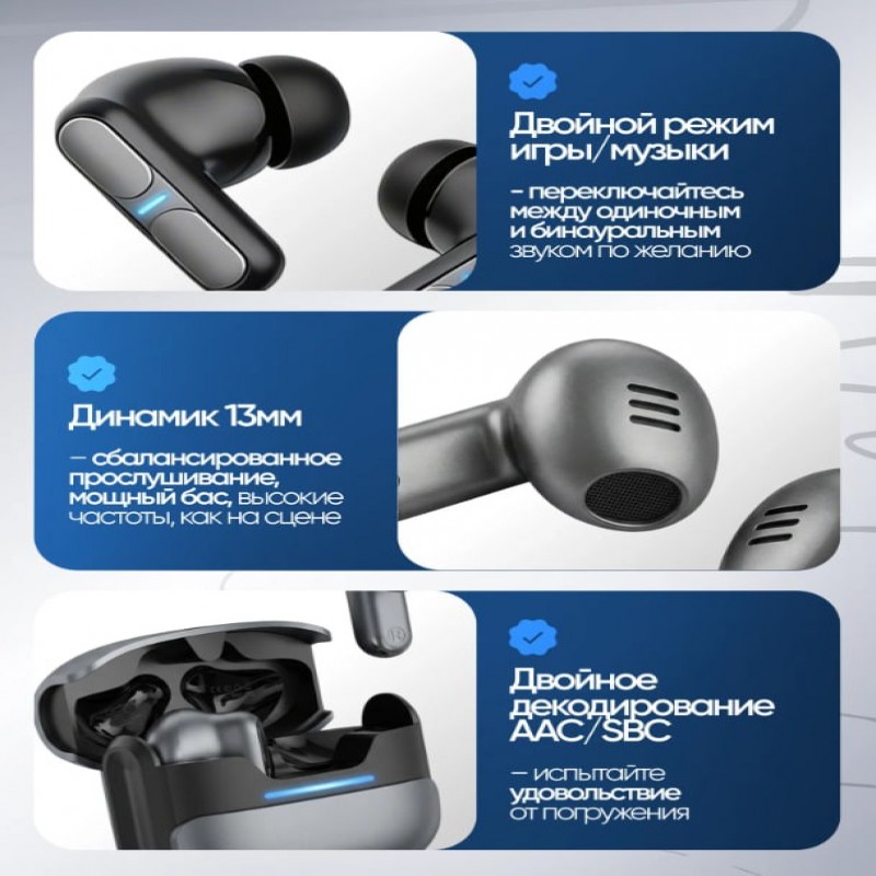 Элегантные внутриканальные устройства обеспечивают четкий звук благодаря закрытому акустическому оформлению и диапазону воспроизводимых частот. Интуитивное сенсорное управление позволяет легко переключаться между треками, регулировать громкость и принимать звонки. Компактный дизайн сочетается с прочностью – пластиковые амбушюры плотно фиксируются даже во время интенсивных нагрузок.