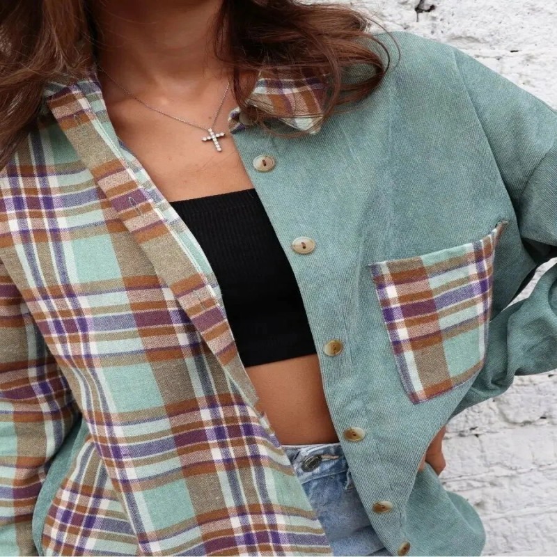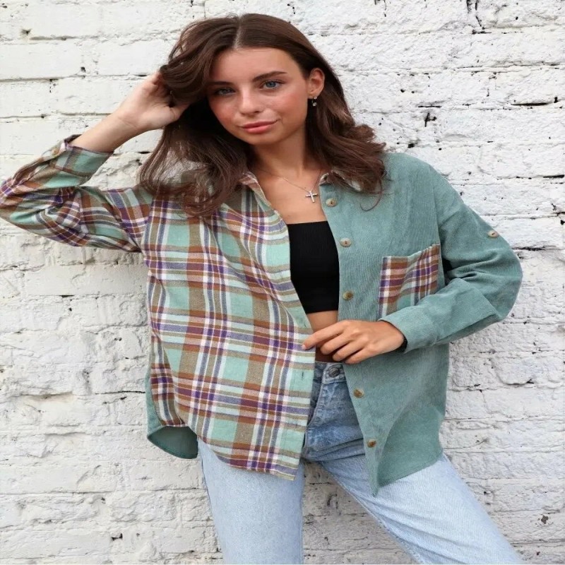Вельветовая, в клетку, оверсайз