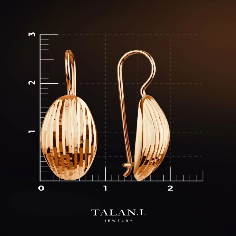 - Ювелирное украшение из красного золота 585 пробы. Лицевая часть в виде овала покрыта алмазной гранью, переливающейся на свету и придающей выразительность без вставок.