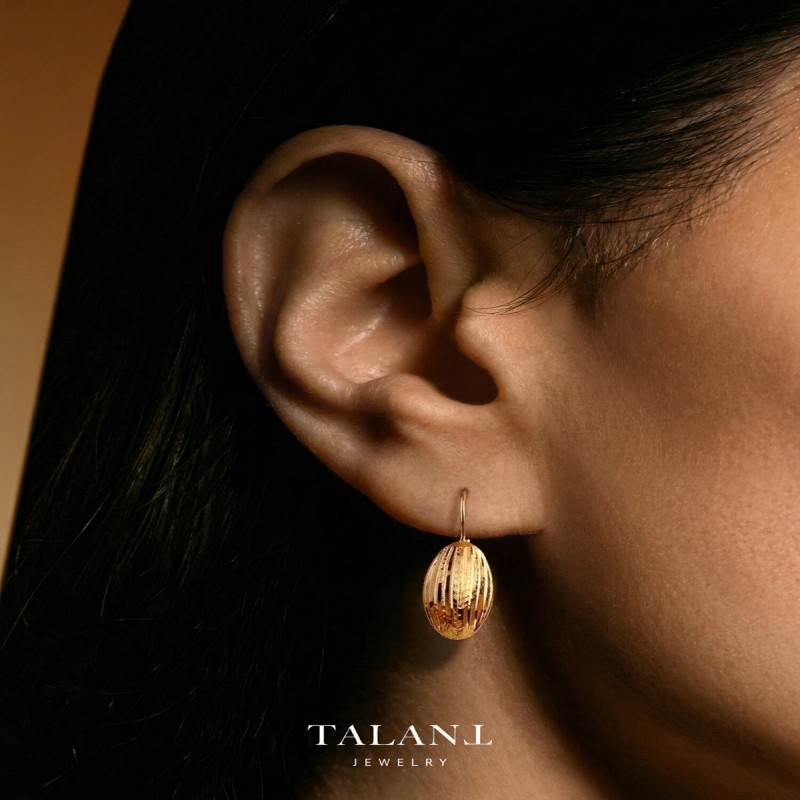 Серьги золотые 585 женские с овальным декором и алмазной гранью — элегантный выбор для повседневных и торжественных событий. Мягкое мерцание граней и теплый оттенок металла создают благородный акцент.