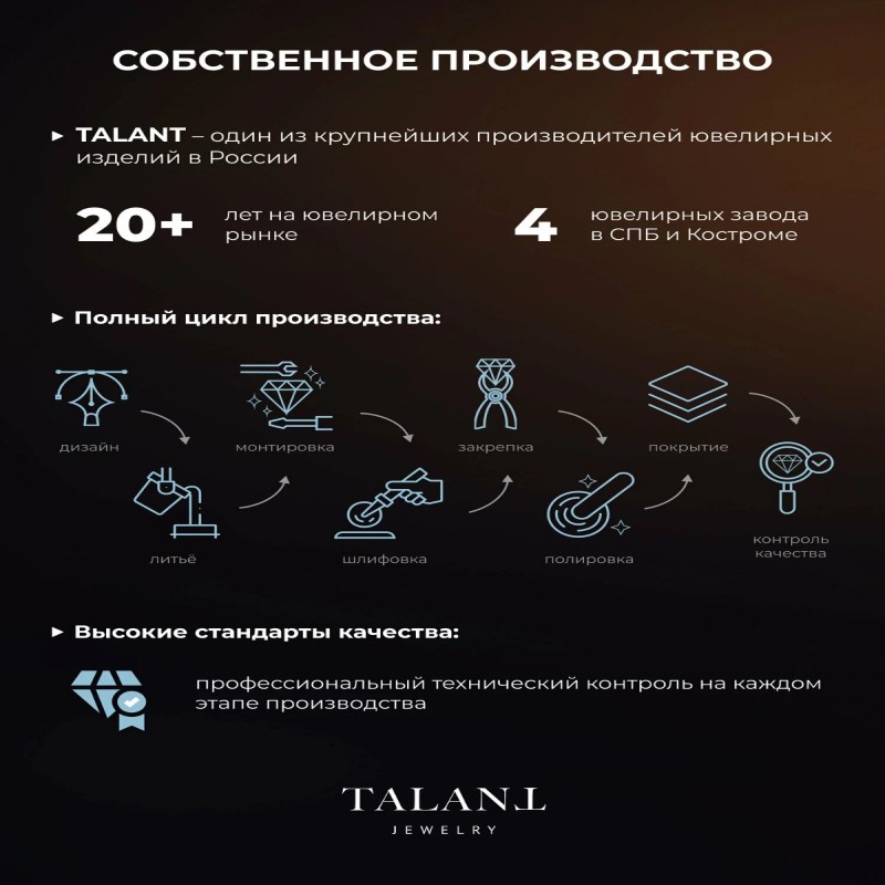 О заводе: Санкт-Петербургский Ювелирный Завод TALANT — это крупный производитель по-настоящему качественной ювелирной продукции.